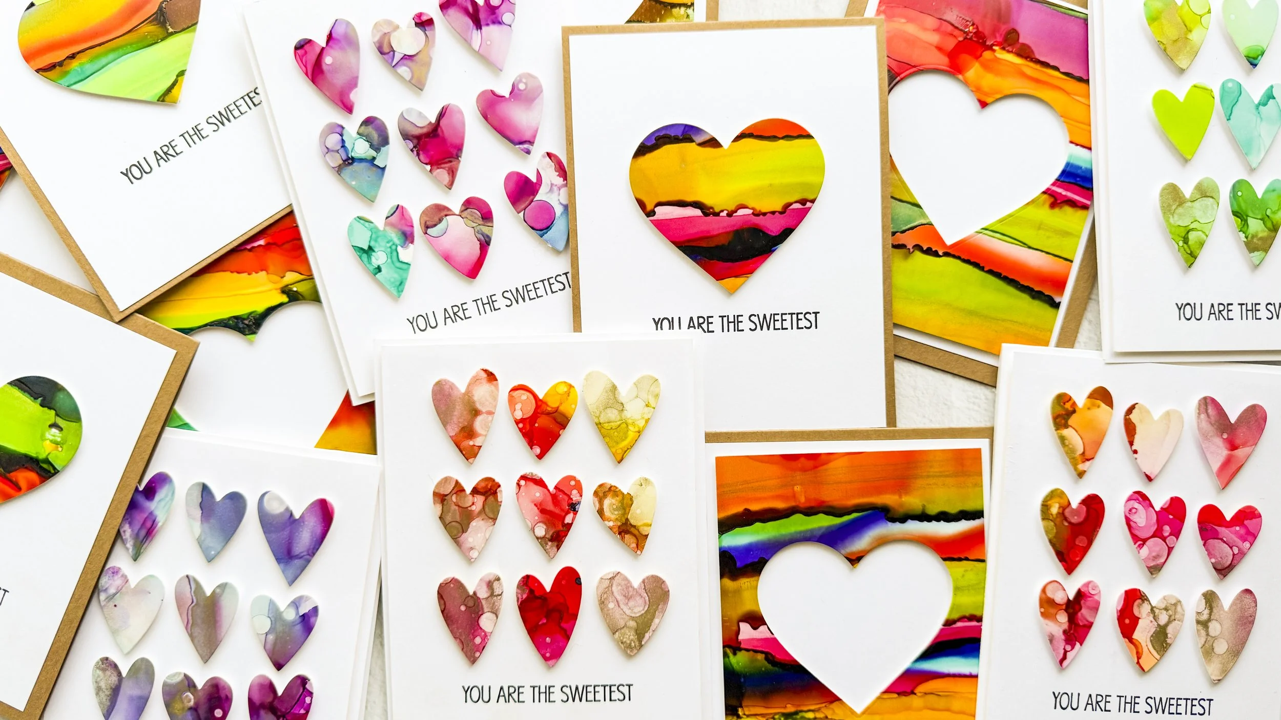 In her Fodder Challenge 2025 project, you will make a set of these uber-adorable heart cut-out cards! Cheiron will be using a new medium in Fodder School: Alcohol inks on Yupo Paper (if you like what you see, make sure you get these materials in advance, Cheiron's Fodder Challenge will be the first one dropping on October 1st!). Once you make a set of gorgeous paint-splatter papers, you can either die-cut or fussycut hearts before Cheiron will provide with her expert guidance on float-mounting on cards.